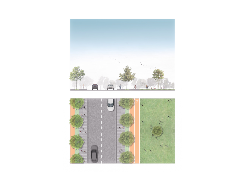 Road Section Render in Photoshop perfect for your 2D illustrations, like sections, elevations, renderings, collages, visualizations, and renderings.