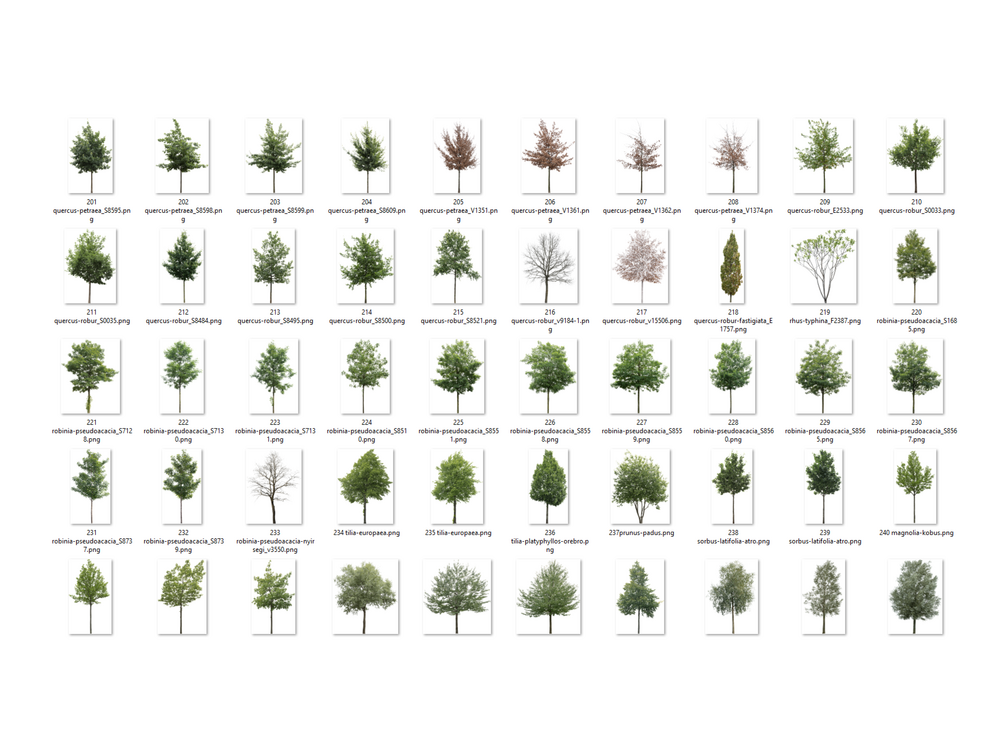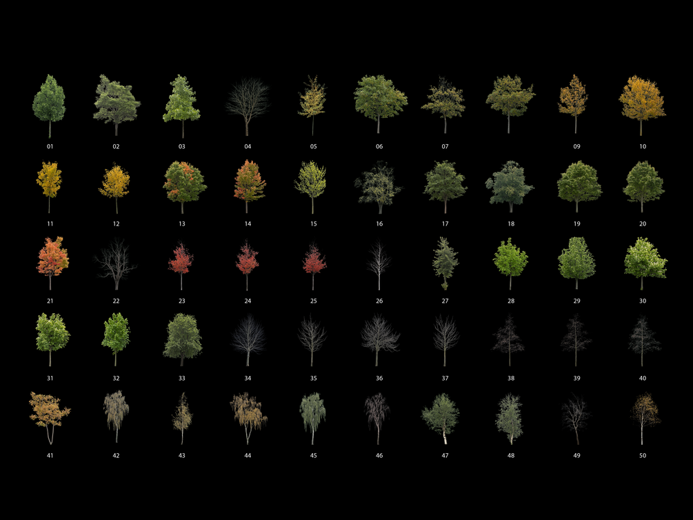 300 High Resolution Realistic Tree PNG Cut Outs with transparent background ready for direct drag and drop using.
