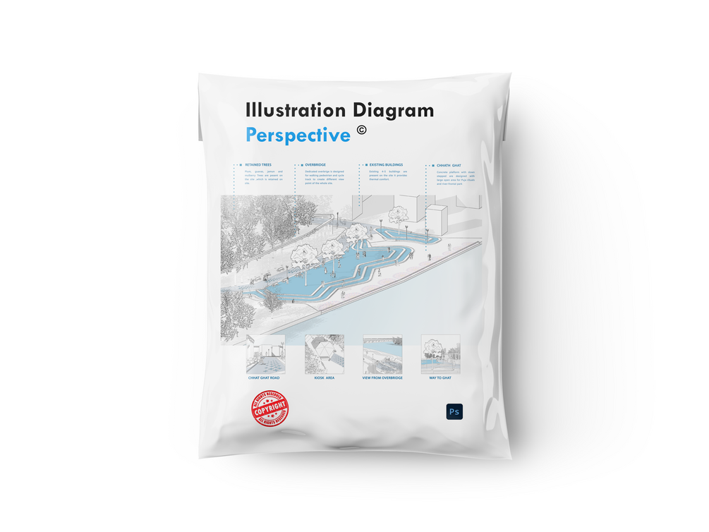 Source file of Urban Design Perspective illustration in Photoshop.